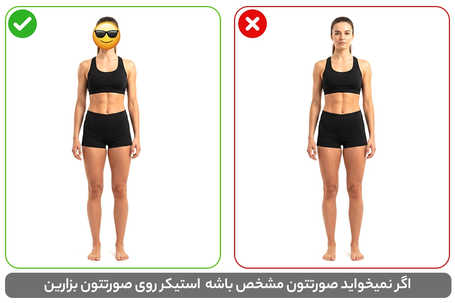 • اگر تمایلی به نشان دادن چهره خود ندارید، میتوانید روی آن یک استیکر کوچک قرار دهید. فقط توجه داشته باشید که استیکر نباید گردن یا سرشانهها را بپوشاند.
